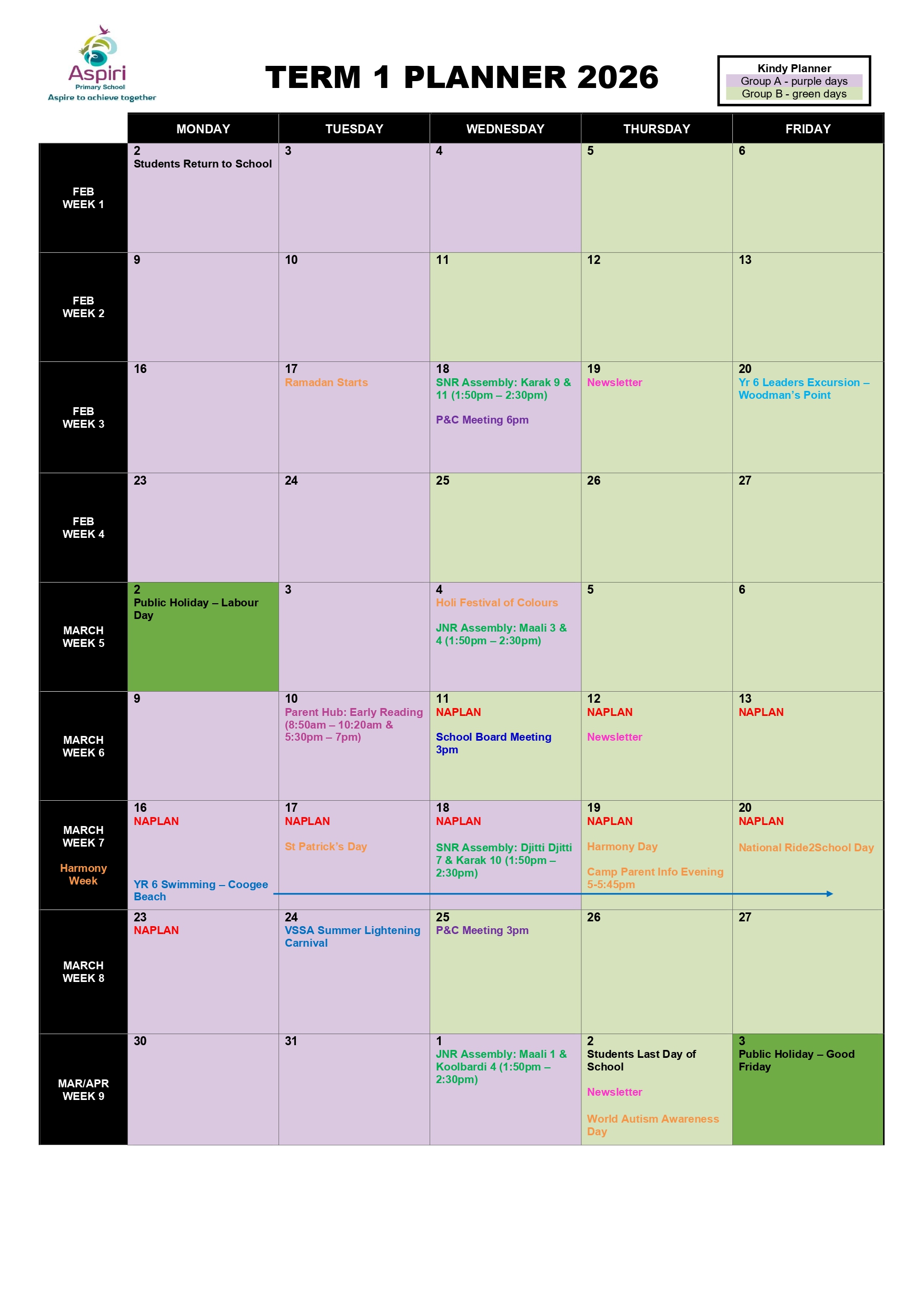 Term 1 2026 Parent Planner